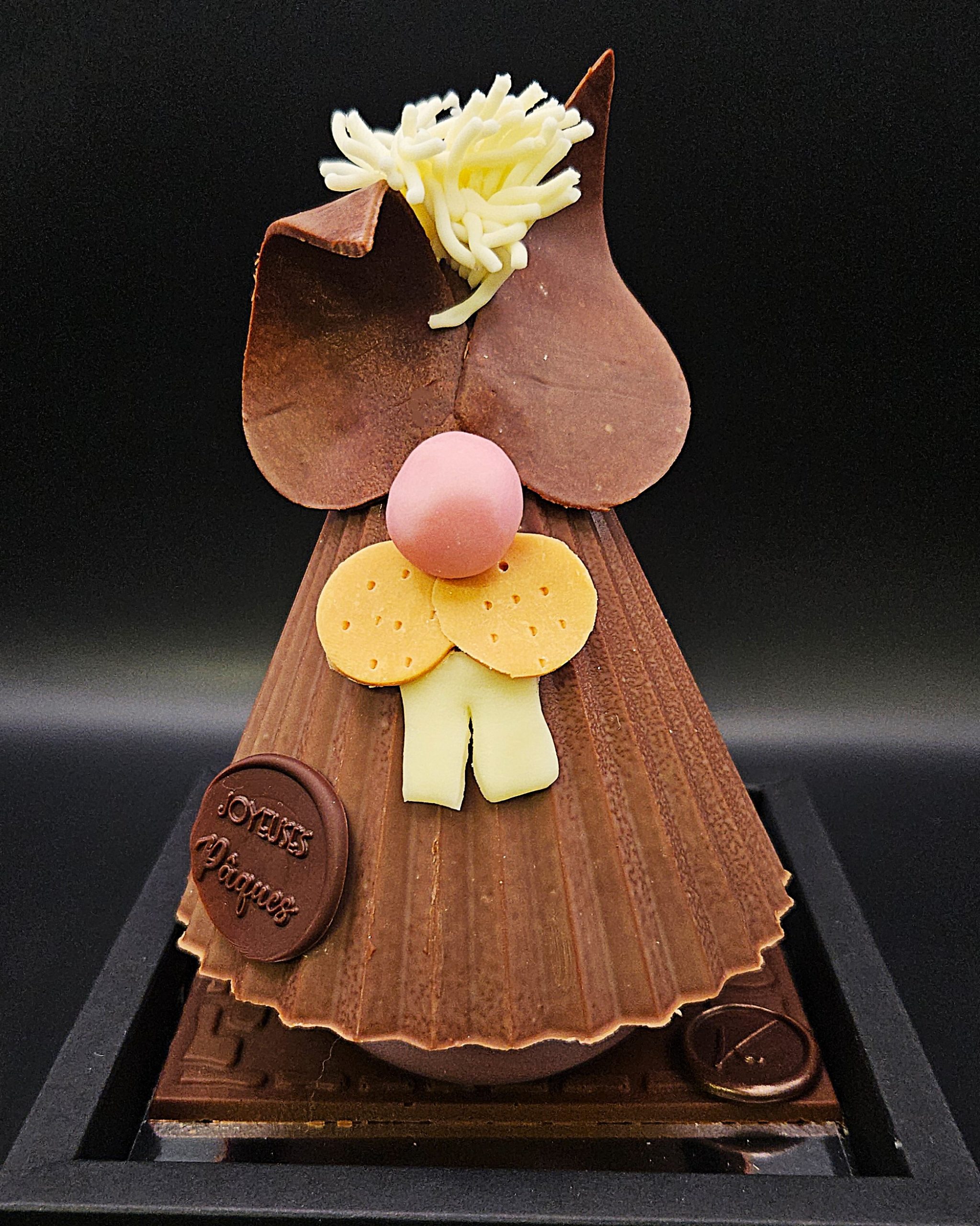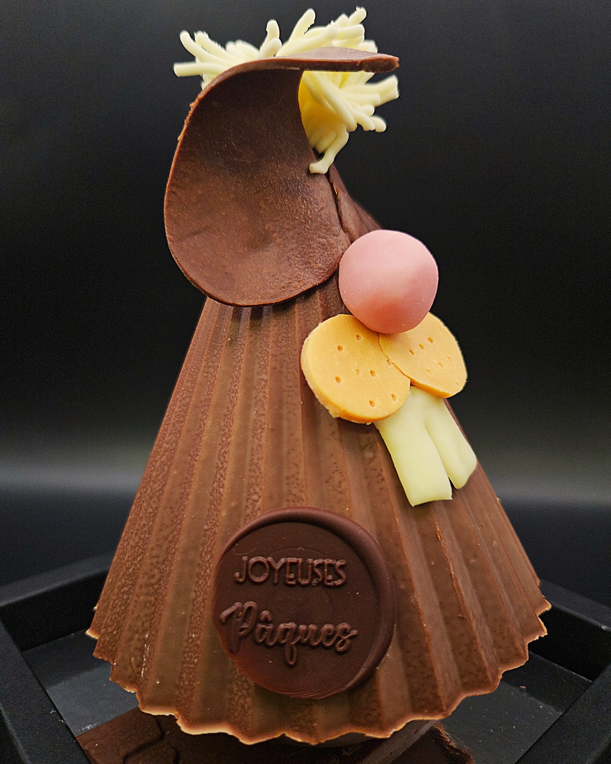 Garni d’œufs nougatine enrobés de chocolat, cette délicieuse création allie croquant et fondant pour une expérience gourmande inoubliable.